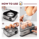 Egg-cellent results everytime, that's what our electric egg boiler delivers. The 8 egg capacity egg boiler easily cooks enough eggs for weekday breakfasts and weekend family brunches. Choose from three boiling modes, hard, medium, soft for eggs or steam dumplings, poach eggs in the poaching tray- the options are plenty.