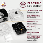 It's easy to operate; all you have to do is add the appropriate quantity of water as per your desired mode, put on the lid and wait for a few short minutes. The auto-off function takes the guesswork out of the cooking process as the appliance shuts off once the cooking is done so you're left with perfect eggs, every morning.