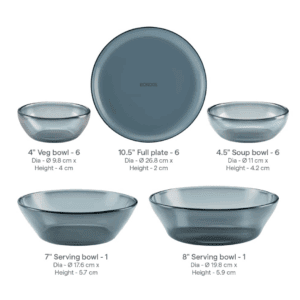 A premium dinnerware set offering a full table solution in handmade colored glass. Combines practicality with Borosil’s brand trust at a mid-premium price point.