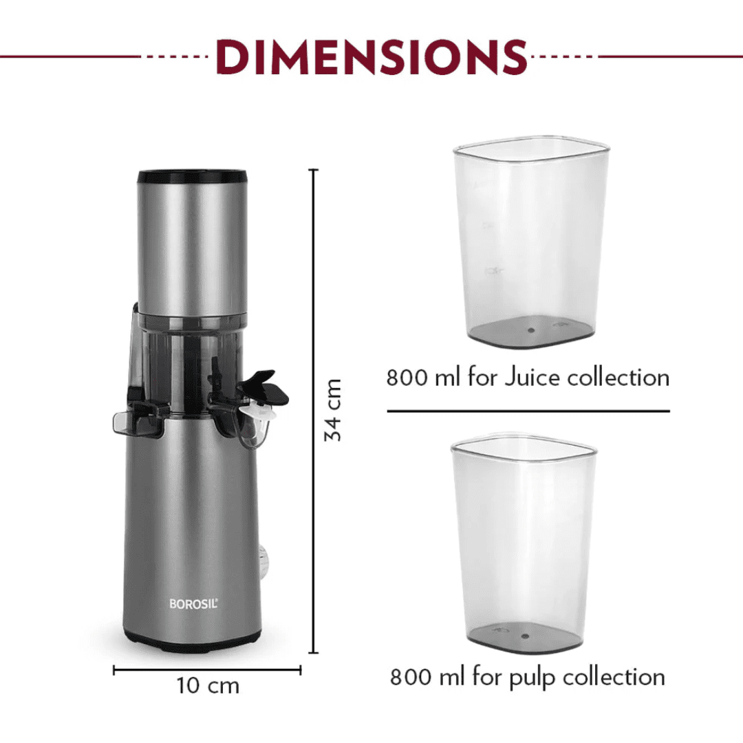 Borosil Smart Cold Press Slow Juicer, Most Compact Slow Juicer for Semi-Hards Fruits & Vegetables