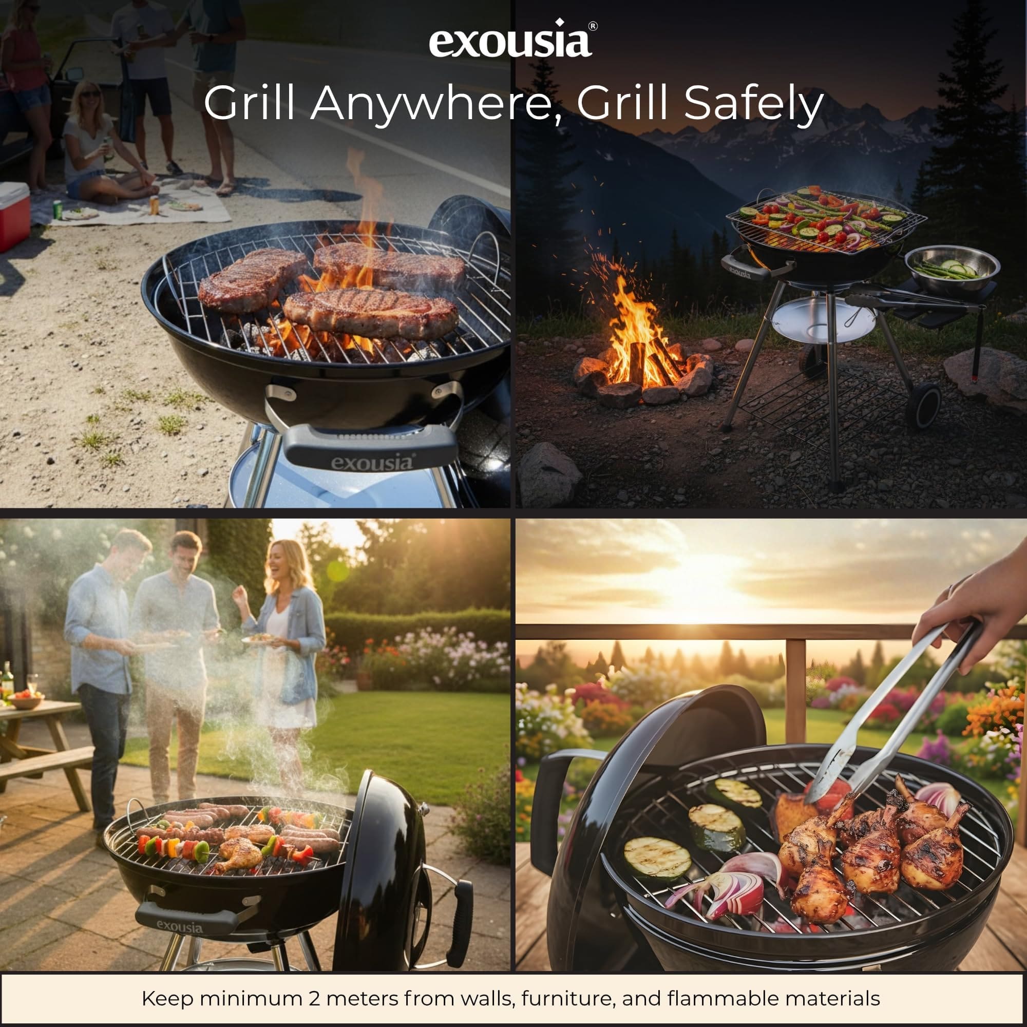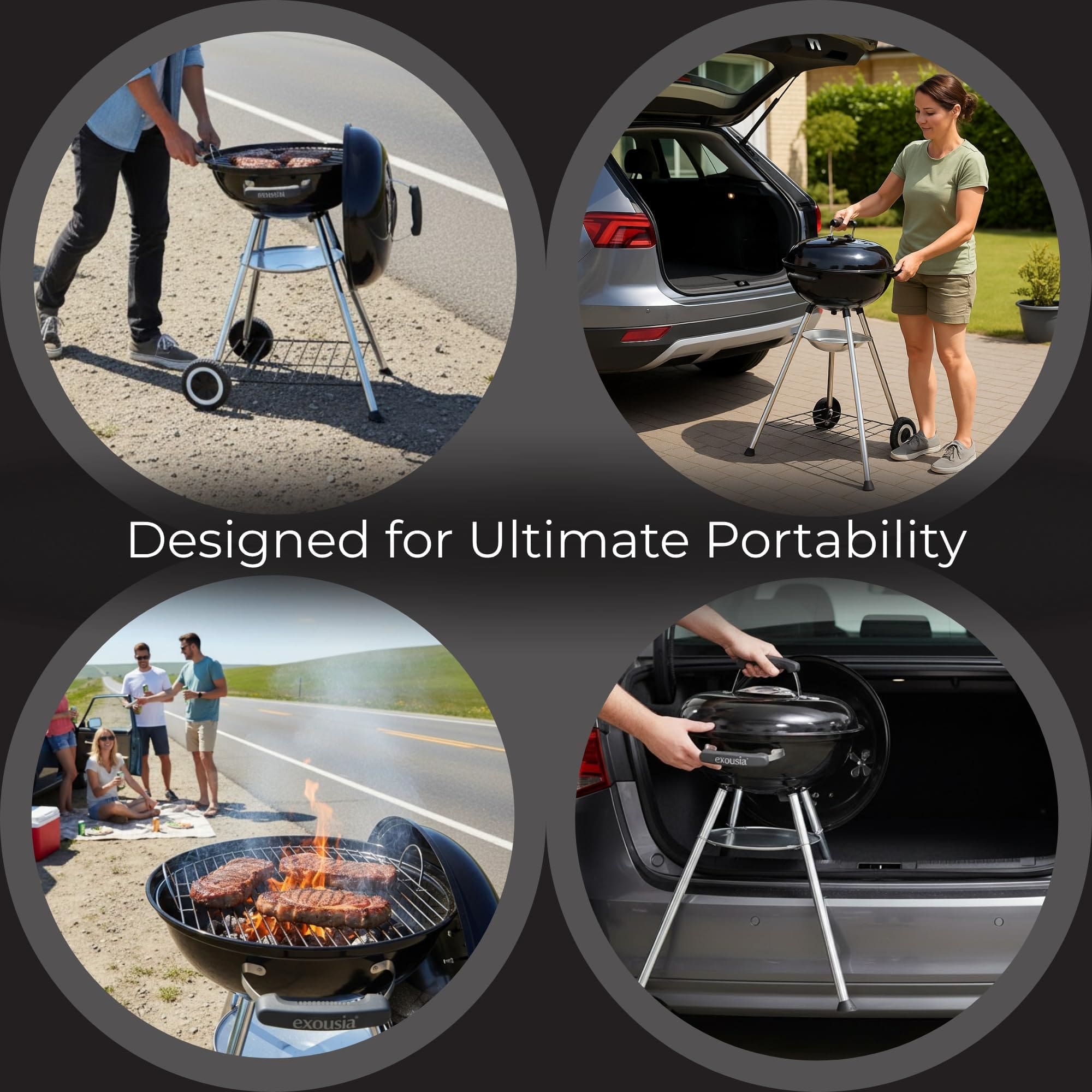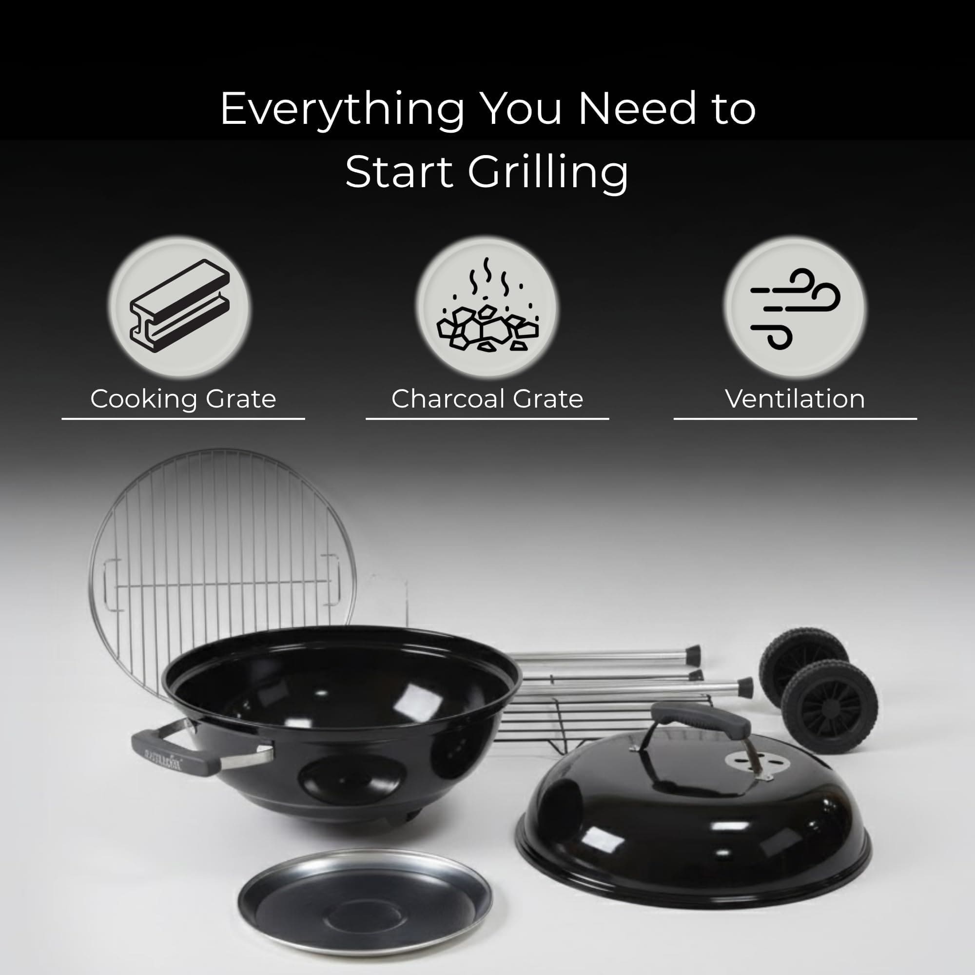 Exousia Charcoal BBQ Grill – 47 cms, Porcelain Coating Fire Bowl and Lid with 4 Legs for Sturdy Balance