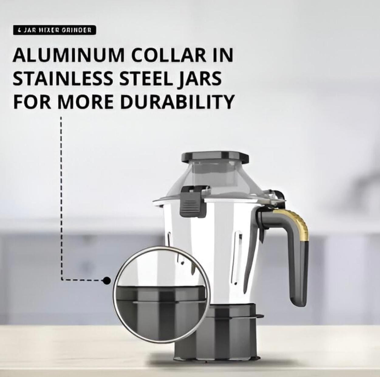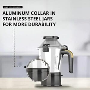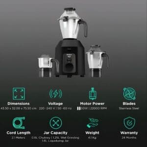 • Comes with multiple stainless steel jars (wet, dry, chutney, and blender jar).