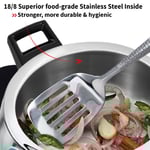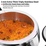 The triply construction promotes uniform heat distribution, reducing hotspots and supporting energy-efficient cooking. The efficient pressure system enables faster cooking while preserving nutrients, textures, and flavors in food.