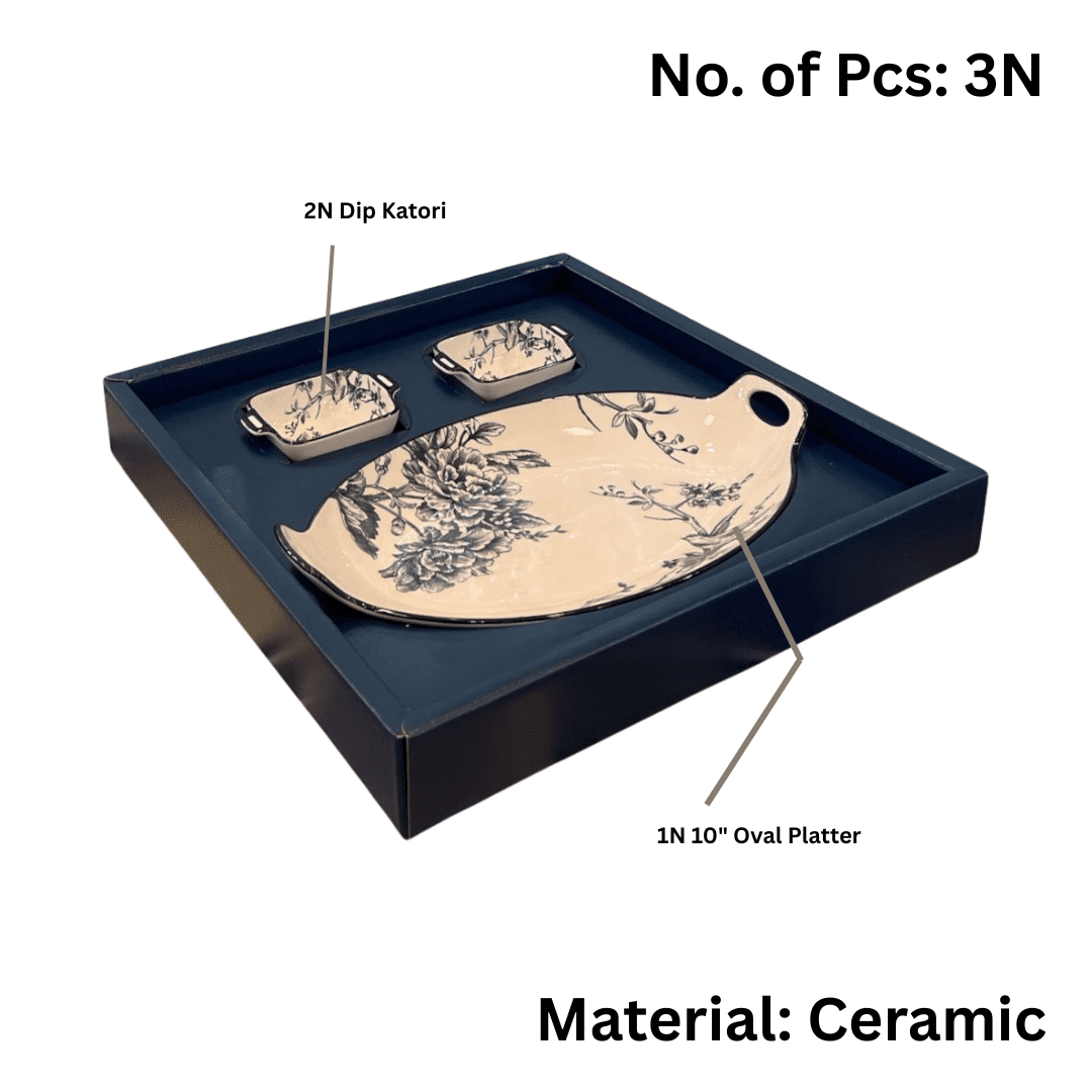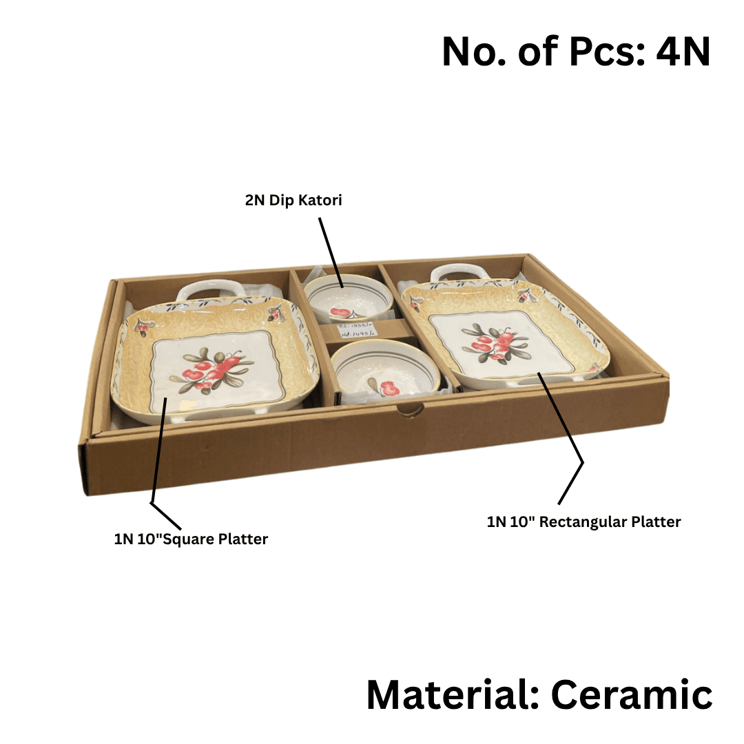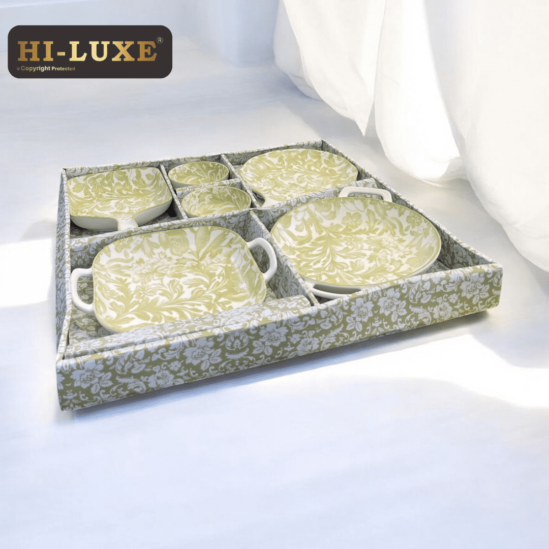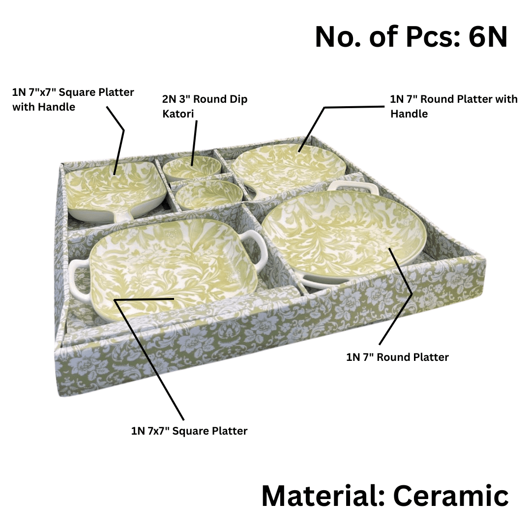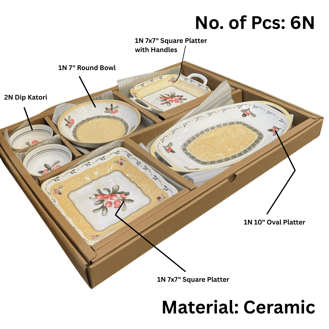 Hi-Luxe Flora 6 pcs Platter Set, Ceramic Serving Set for Casual Hosting & Gifting