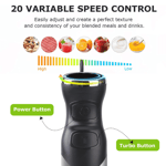 EFFECTIVE 20 SPEEDS & FUNCTIONAL TURBO BUTTON: INALSA hand blender with 20 variable speeds control, adjust the blade speed and the texture of every blend and give you maximum choice and precision to prepare foods from smooth purees to chunky homemade salsas. A separate Turbo Button gives quick burst of power to blast ice faster and blend your ingredient or refresh the blade and cup with water for fast cleaning.