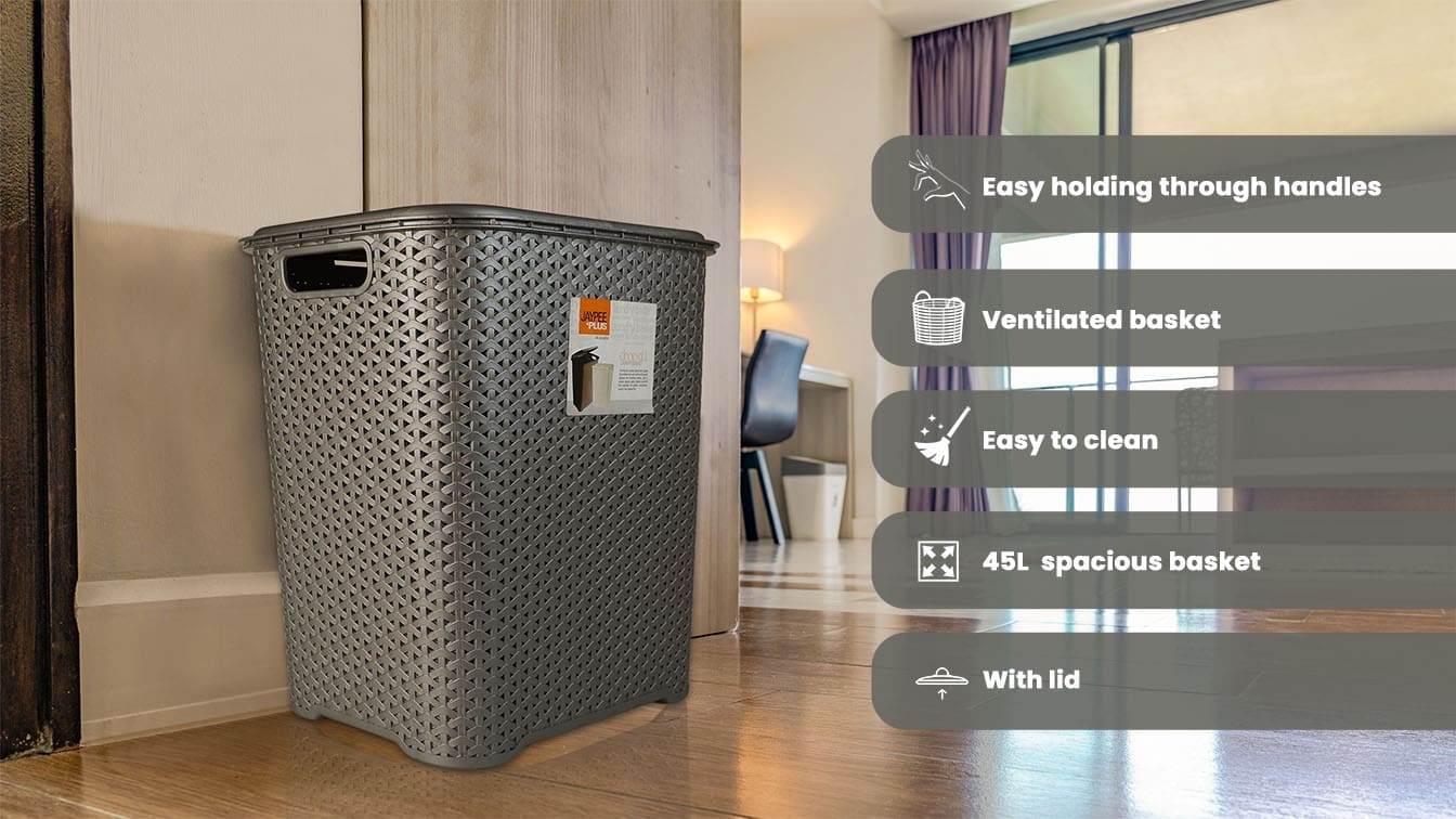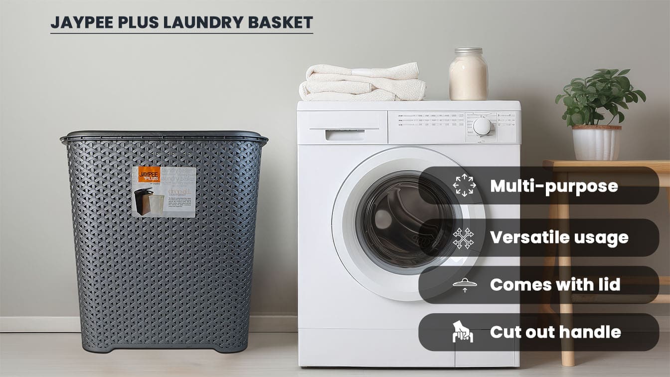 Jaypee Drop All Laundry Basket (Small), Sturdy & Spacious Basket with lid, Ideal for clothes, toys & storage