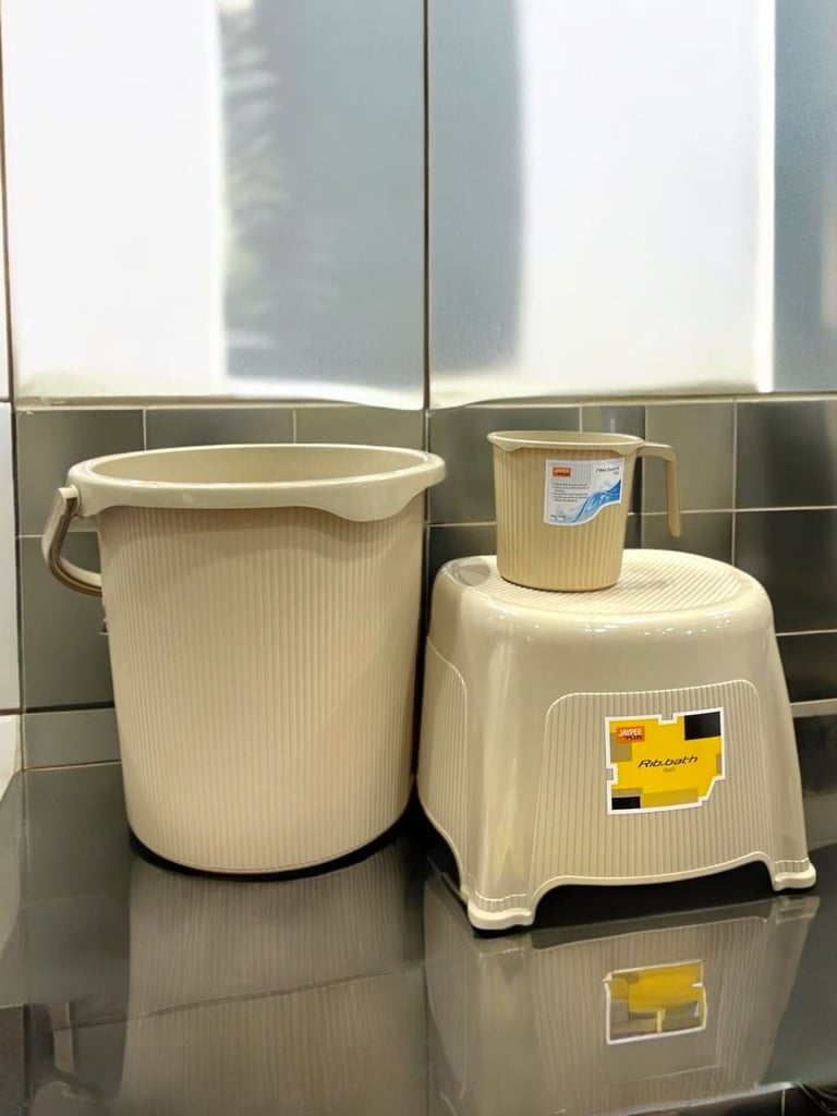 Jaypee Ribbed Series Bathroom Set, Bucket (25 Ltr.) + Mug + Stool