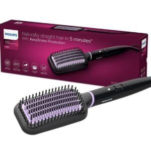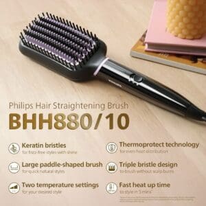 Quick and gentle hair straightening with the convenience of a brush.