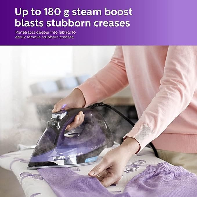 Continuous steam output (45 g/min) and steam boost (180 g) for stubborn creases.
