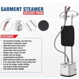 Robust ABS housing with heat-resistant body. Precision heating element delivers consistent steam pressure. Convertible ironing support is reinforced for stability during horizontal use.