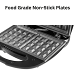 - NON-STICK WAFFLE PLATE 🧇 – The waffle plate features a non-stick coating and high-temperature characteristics, ensuring easy food release and effortless cleanup while providing perfectly cooked waffles every time.