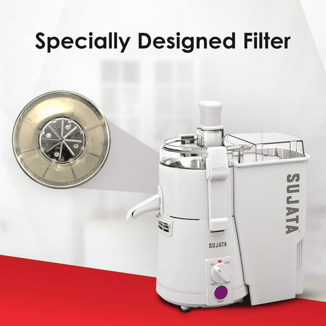 • Unique honeycomb filter mesh for finer juice extraction with higher yield.